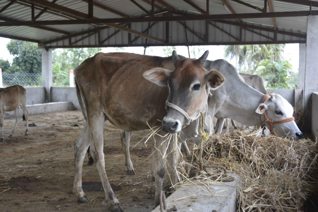 Savithri Gorakshna Samithi is a non-profit charitable trust devoted to providing shelter and care for young and aged cows in the Chennai metropolis. Established 27 years ago, the organization currently cares for 130 cows and calves, allowing them to graze freely on the organization’s open land and tying them only at night. The Samithi operates under the divine blessings of Sri Sri Chandrashekaraendra Saraswati Maha Periyava.